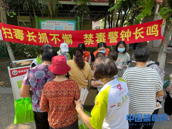 中国禁毒网讯 9月9日,广州市白云区同德街禁毒办联同同德文化广场志愿者驿站在辖内同德公园内开展以“扫毒长抓不懈,禁毒警钟长鸣”为主题的禁毒宣传活动。