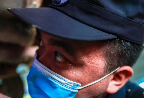 云南普洱边境管理支队澜沧边境检查站白天的执勤现场温度超过40℃,执勤民警每天都要身着防护服查缉,就像处在蒸笼中,汗流不止;戴了8小时医用手套的手,在下勤时被汗水浸泡得满是褶皱。深夜,气温降到10℃以下,白天热得心慌,到了晚上全靠“保暖3件套”——保暖衣、防弹衣、防护服,护目镜上全是雾气,几分钟就得擦拭一遍。