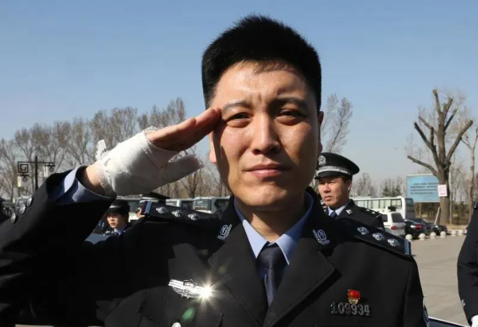 生威抓获杀害民警李尚恒的犯罪嫌疑人后,向牺牲的李尚恒敬礼。