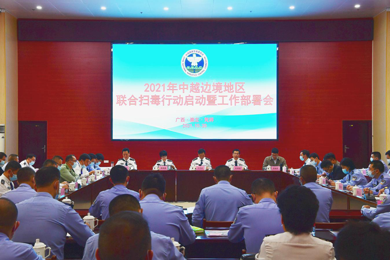 10月20日,2021年中越边境地区联合扫毒行动启动暨工作部署会在广西壮族自治区凭祥市召开。中方行动领导小组8个成员单位海关总署缉私局、交通运输部运输服务司、农业农村部渔业渔政管理局、国家移民管理局边防检查管理司、民航局公安局、国家邮政局市场监管司、中国海警局执法部、铁路公安局,以及参与行动的广东、广西、海南、云南4省区,湛江、茂名、南宁、北海、防城港、钦州、百色、北海、海口、三亚、昆明、红河、文山等13个市州公安禁毒部门分别派员参会。中方行动领导小组副组长、国家禁毒办副主任、公安部禁毒局副局长兰卫红到会并对联合扫毒行动进行部署。