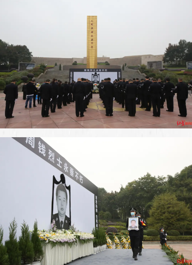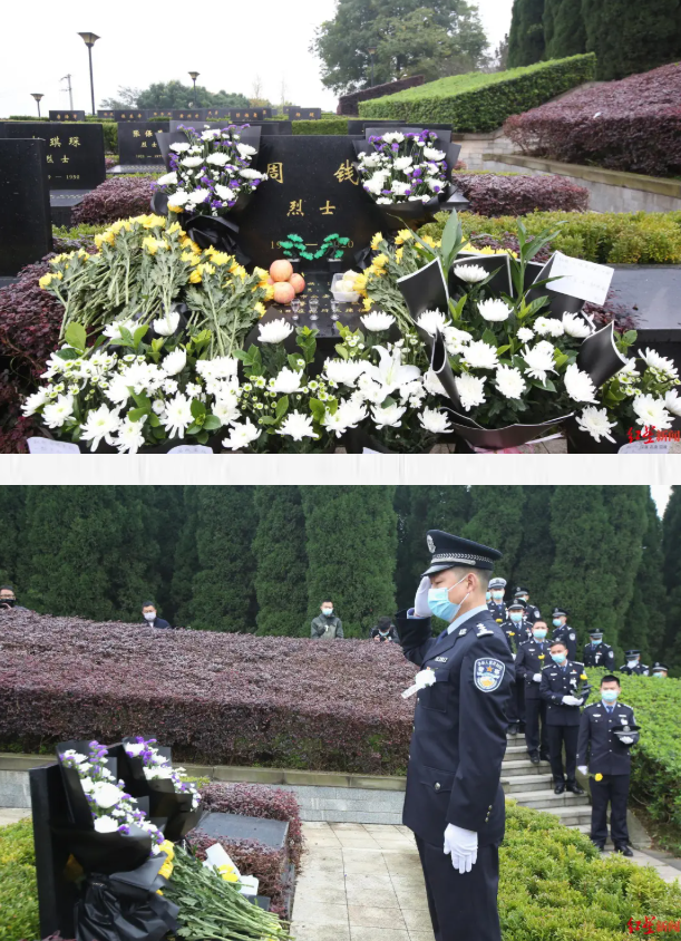 近日,四川省成都市公安局温江区分局禁毒大队民警周钱烈士安葬仪式在成都市烈士陵园举行。周钱烈士亲属、生前同事及社会各界群众代表纷纷来到烈士长眠之处,怀着无比沉痛的心情送别这位缉毒英雄最后一程。