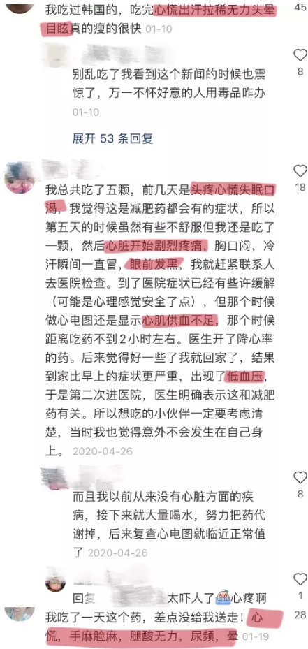 但同时也可以看到,非常多吃过这些“减肥药”以后的人反馈了一些符合吸食精麻药品的症状。