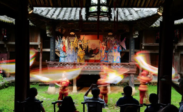 寿宁北路戏是地方传统戏剧,国家级非物质文化遗产之一,在数百年的演出活动中深受广大观众喜爱。戏剧《亮禁毒利剑,守幸福家园》以“绿色无毒”为主题,曲调旋律优美,节奏欢快,行腔顺畅,以叙事性的表现特征对浩瀚史料和当地禁毒工作进行了精心的选择和提炼,展示警民融合联动共建无毒家园的生动画面,彰显出对禁毒人民战争必胜的坚定信心和决心。