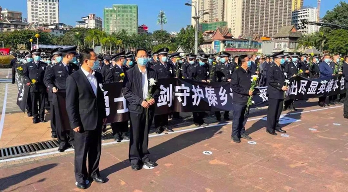 12月8日上午,缉毒英雄蔡晓东同志遗体送别仪式在云南省西双版纳州景洪市泼水广场举行。