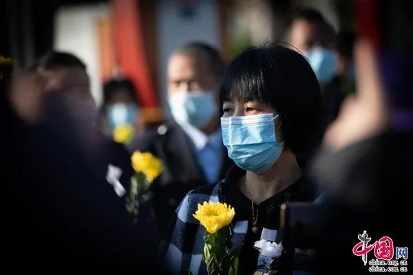 市医疗保障局的尚女士说:“在朋友圈知道了蔡晓东同志的事迹,很受触动,他是为我们而牺牲的,今天我们单位集体前来送他,希望他一路走好。”