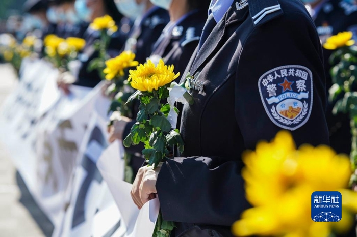 12月8日,缉毒英雄蔡晓东同志遗体送别仪式现场。 新华社发