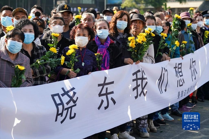 12月8日,群众参加缉毒警察蔡晓东遗体送别仪式。 新华社发
