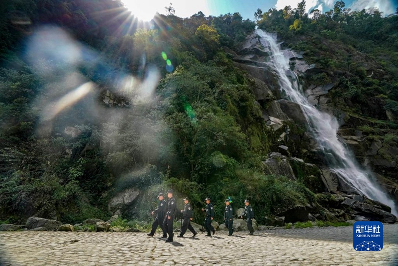 独龙江边境派出所民警在边境巡查(2019年4月20日摄)。 新华社记者 江文耀 摄
