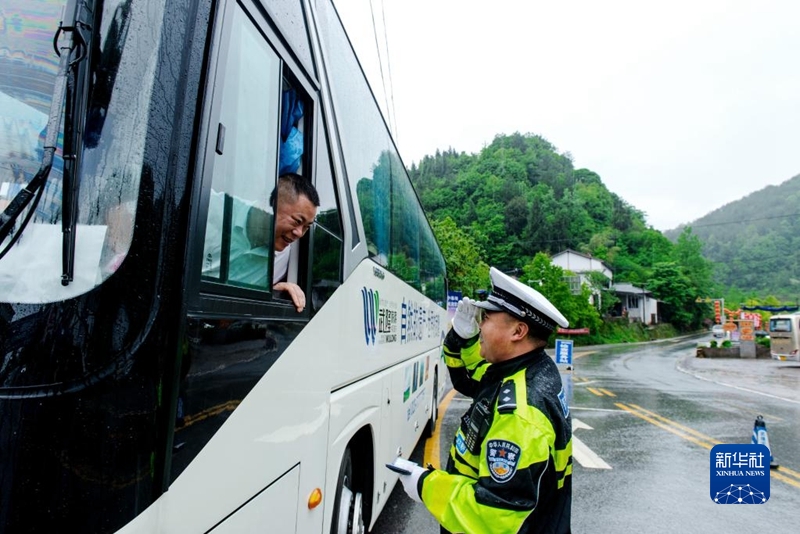 交警罗旦华在工作中(资料照片)。 新华社发