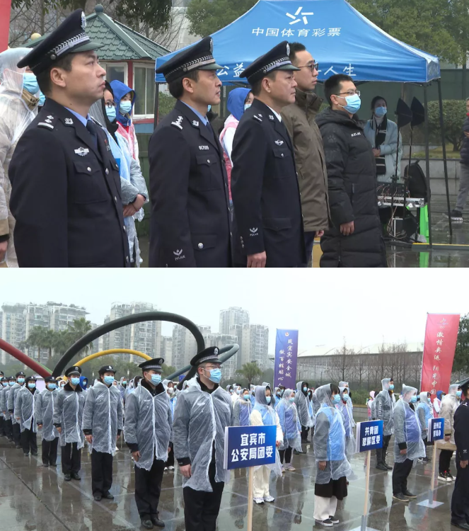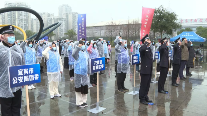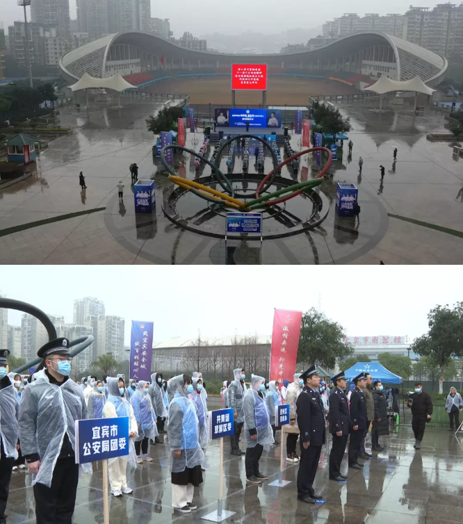 活动现场,宜宾市禁毒办、共青团宜宾市委、叙州区禁毒办、宜宾市体育中心、共青团翠屏区委、共青团宜宾职业技术学院委员会、宜宾市第六中学校、共青团宜宾市公安局委员会、叙州区南岸街道龙湾社区组成的方队整齐站立。