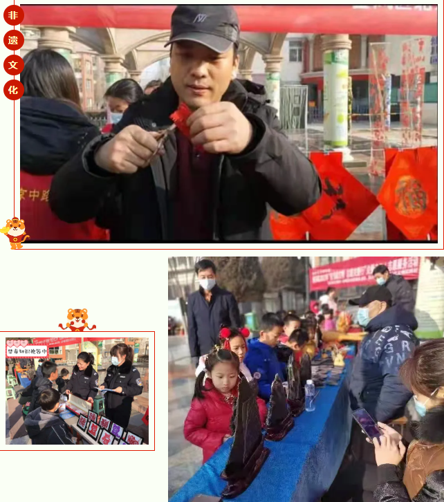 活动一开始,身着汉服的小朋友们在优美的古风音乐中翩翩起舞,增添了过大年的喜悦。这次非遗文化集市集中展示贺兰石雕刻、剪纸、葫芦烙画、捏面人等多个非遗项目,现场还有贺兰砚制作、剪纸艺术创作等环节,金凤区禁毒办特别邀请到国家级非物质文化遗产项目贺兰砚制作技艺自治区级代表性传承人王辉、宁夏非物质文化遗产剪纸代表性传承人张旺红老师、银川市非物质文化遗产传承人陈湘军,老师们来到现场向群众介绍非物质文化遗产项目,并现场即兴剪出了形态各异的作品,让群众切身感受到了民间剪纸的艺术魅力。