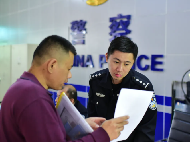 这时,刚出警回来的陈家振用简单的英语和该名学生交流起来。原来,这名学生想去龙昆南派出所,问了很多群众,找到了这里。该学生想办24小时住宿登记,因为快逾期了,所以急得满头大汗。