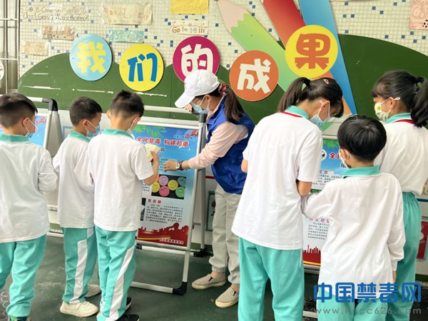 图为禁毒社工向学生讲解禁毒相关知识。中国禁毒网发