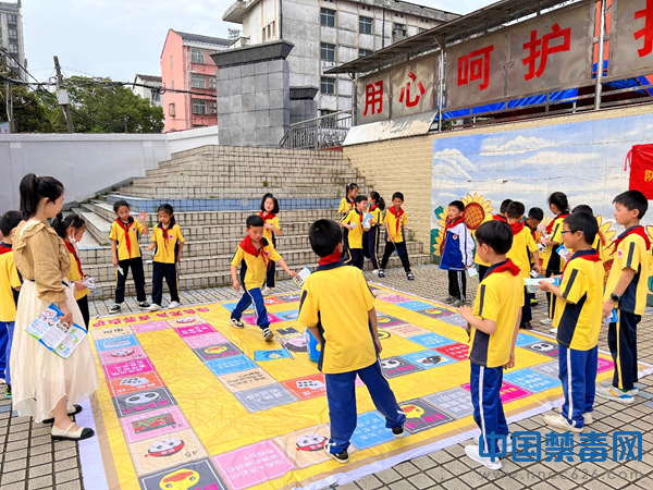 此次活动以班为单位,通过抽签形式分组,开展大闯关禁毒游戏活动,将禁毒知识、毒品的危害以及毒品预防知识等内容,以提问的形式内容设置在每一个关卡,每一位闯关学生回答关卡的禁毒问题,根据答题多少发放不同的奖品。通过将毒品预防教育知识融入简单、有趣的游戏项目,辅之以禁毒宣传笔袋、玩具等精美礼品为奖励,寓教于乐,寓学于趣,让每一位参与活动的同学们都能在快乐游戏的过程中,轻松接受禁毒知识的教育和熏陶,从小树立起禁毒的使命感。