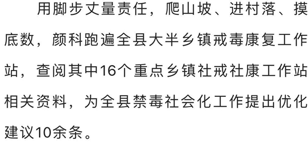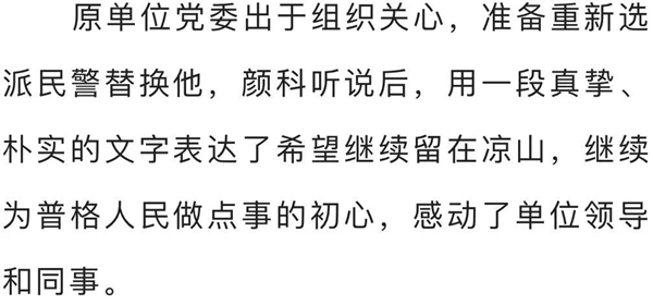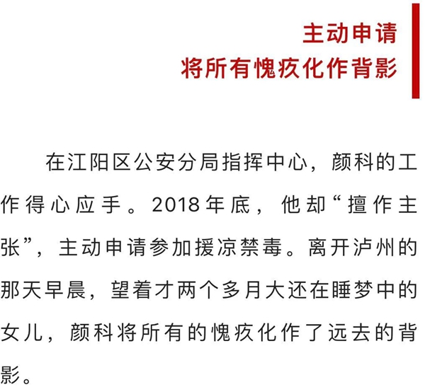 颜科,泸州市公安局江阳区分局禁毒缉毒大队副大队长,2019年1月至2021年1月挂职凉山州普格县委禁毒办副主任。