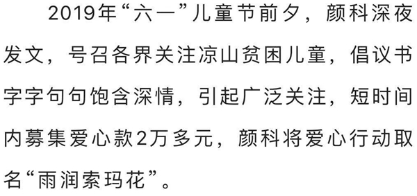 随后一年多时间,“雨润索玛花”共收到300多位爱心人士的捐款和大量物资,为400多名孩子带去了快乐、希望和鼓励,同时也为7名品学兼优的初中生找到了助学人士,重点帮扶了6个深受毒品危害家庭的孩子。
