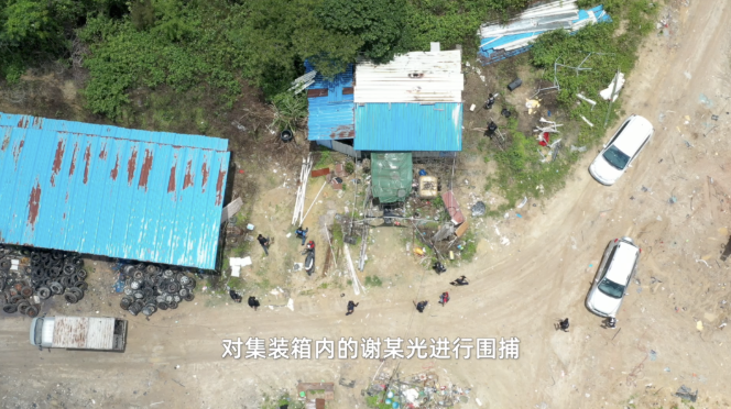 5月20日,结对攻坚专班共派出18名警力对集装箱内的谢某光进行围捕,最终将谢某光抓获归案,成功实现对谢某光贩毒团伙的全链条打击。