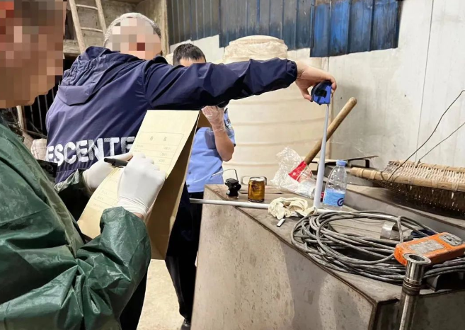 三教镇附近山高林密,零星几户人家背后就是茫茫林海,山高林密、人迹罕至。为了弄清制毒工厂的具体位置,4月中旬,专案民警多次进入三教镇可疑区域布控。数日后,民警翻山越岭,穿越一大片竹林后,赫然发现一扇铁门,从外观看,是一个废弃酒厂。专案组初步判断,制毒工厂就在这里。