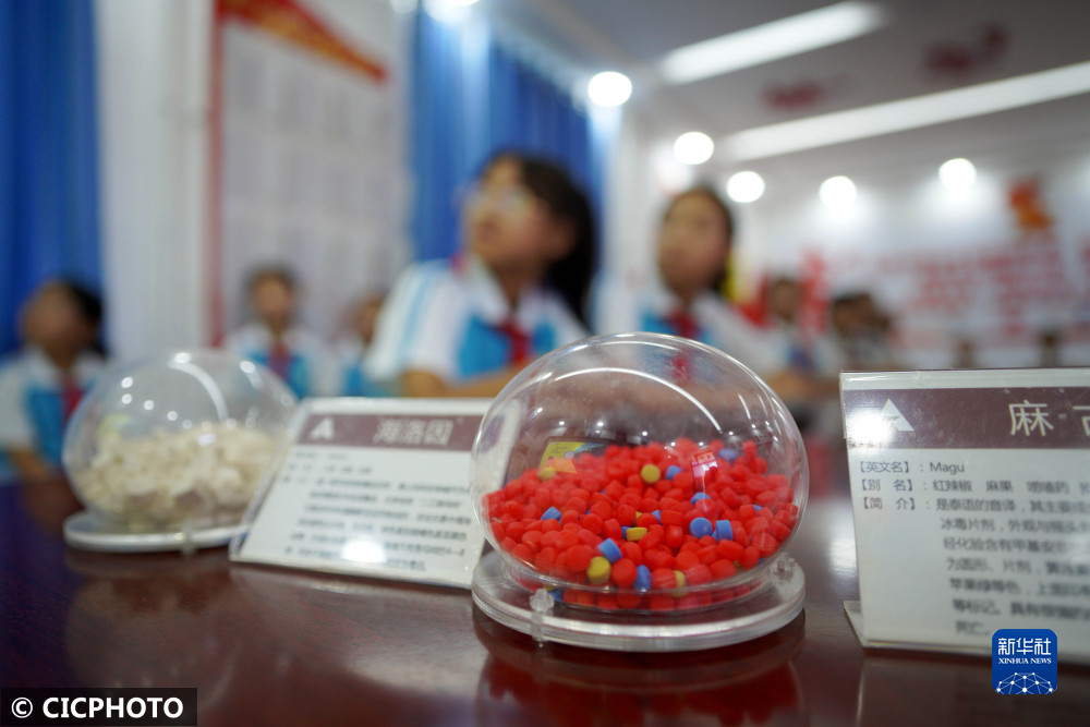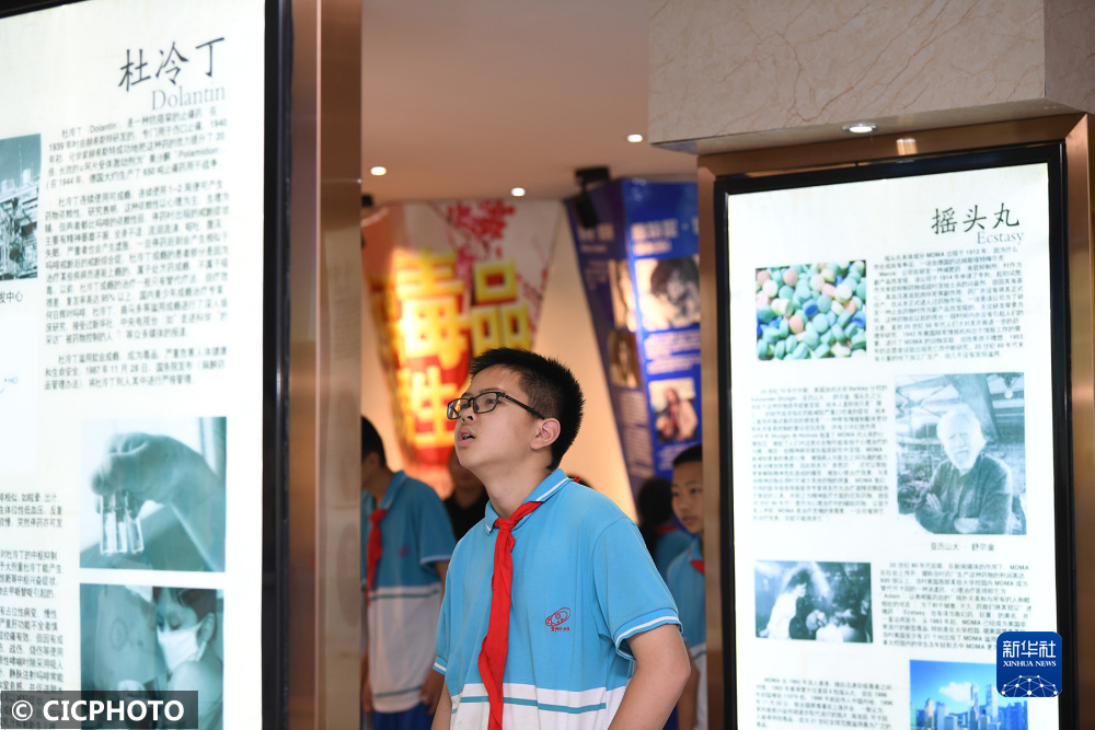 ↑2022年6月22日,贵州省贵阳市第十六中学学生在该校青少年毒品预防教育基地参观。CICPHOTO/赵松 摄