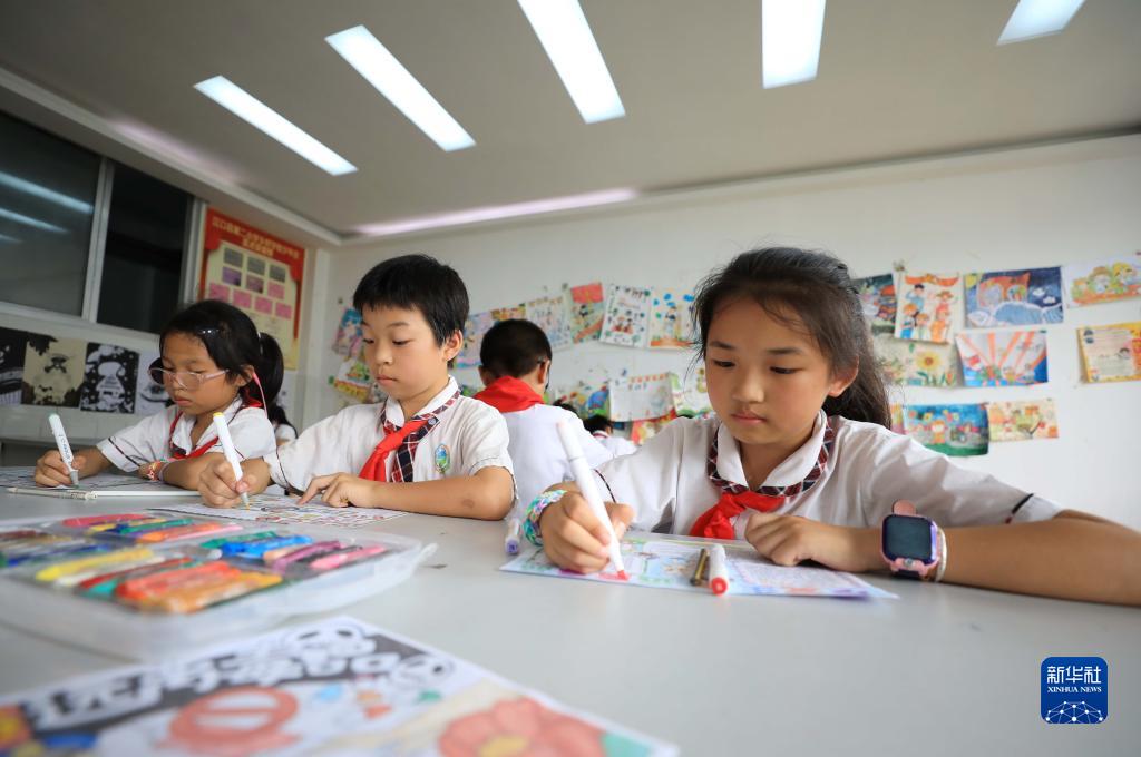 6月24日,学生在贵州省铜仁市江口县第二小学参加禁毒教育绘画活动。 新华社发(李鹤 摄)