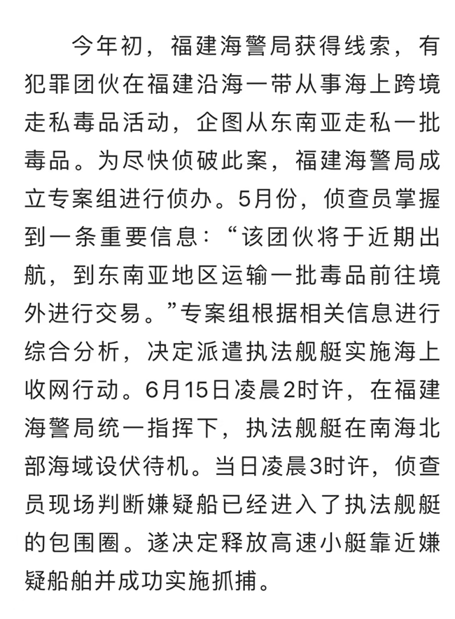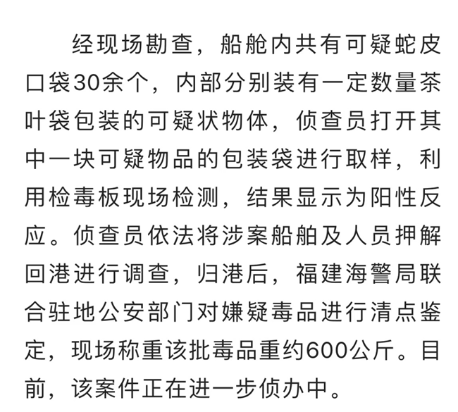 福建海警查获一起特大跨境走私毒品案,缴获毒品600公斤