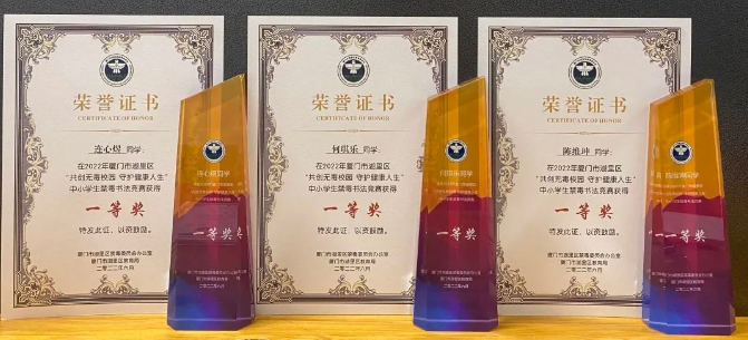 近日,福建省厦门市湖里区禁毒办联合区教育局举办2022年“共创无毒校园,守护健康人生”中小学生禁毒主题书法、微视频竞赛活动。竞赛设置6个奖项,共有113位学生获奖。获奖作品中既有泼墨挥毫书禁毒,又有帧帧画面表决心。