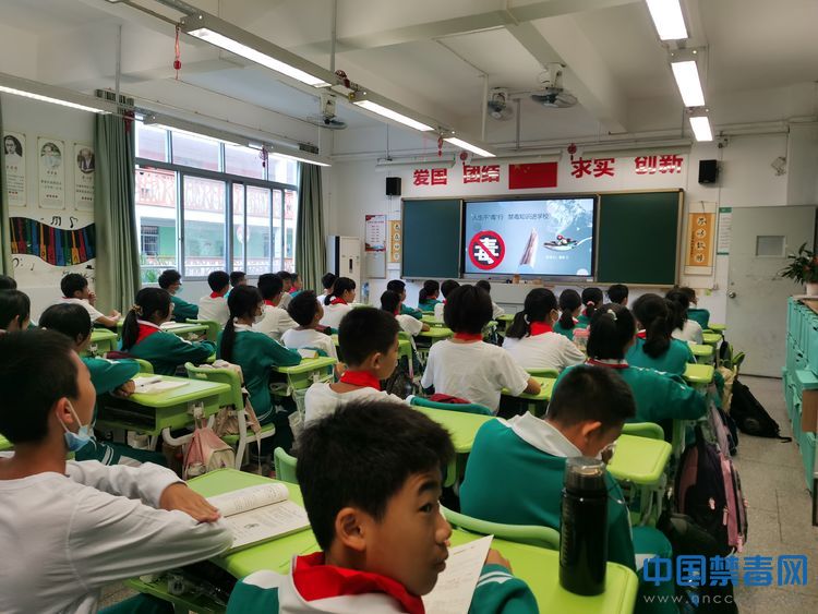 图为学生观看线上禁毒宣讲。中国禁毒网发
