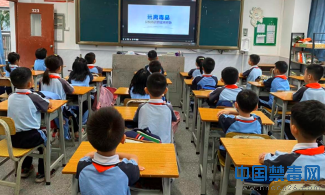 课堂上,工作人员通过线上播放禁毒教育视频,结合老师的现场讲解和互动问答游戏,加深学生对毒品预防教育的认识,了解禁毒相关知识。