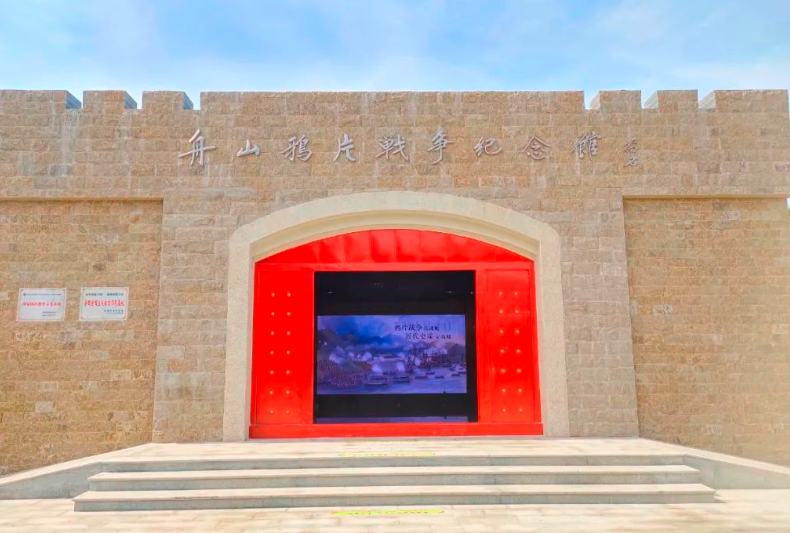 舟山鸦片战争纪念馆位于定海城西竹山鸦片战争古战场遗址晓峰岭上,是浙江省第一座以鸦片战争为主题的纪念馆。