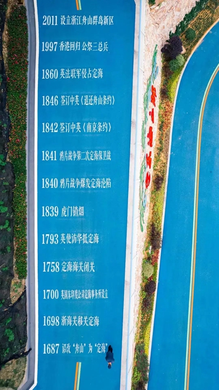 今年“五一”期间,东海云廊竹山段对外开放,该段绿道和东山段一样留住了自然风光,并结合鸦片战争古战场遗址,在沿线景观小品布置中融入定海鸦片战争这一历史文化元素。