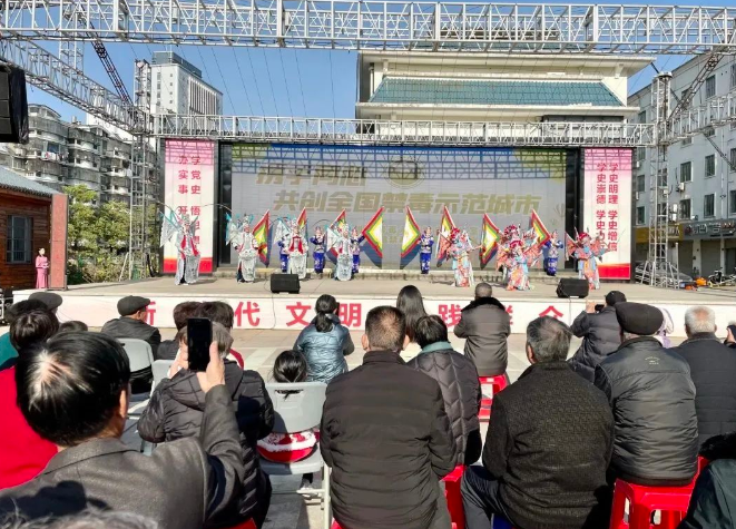 1月29日下午,福建省宁德市城区兰亭社区格外热闹。由宁德市首届禁毒先锋——寿宁北路戏保护传承中心带来的原创禁毒剧目《亮禁毒利剑,守幸福家园》正在百姓大舞台上精彩上演,吸引了众多居民前来观看。