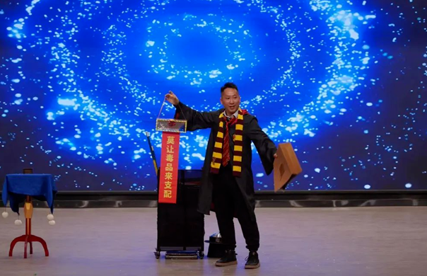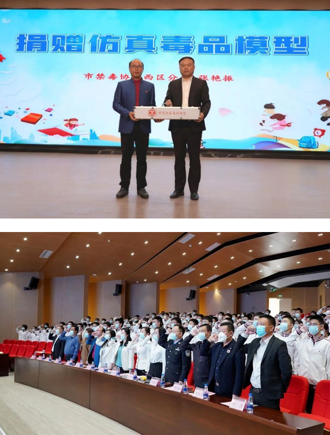 活动还编排内容丰富、学生喜闻乐见的歌舞、独唱、魔术等艺术形式,将禁毒宣传融入其中,赢得学生们的阵阵掌声。现场,中山市禁毒协会西区分会向烟洲中学捐赠仿真毒品模型。