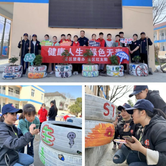 绿植和轮胎的组合,成为一道独特的禁毒风景,不仅让学生与大自然“对话”,感受美化环境的意义,更筑牢了校园“防毒墙”,让孩子们在安全、健康、无毒的环境中健康成长。