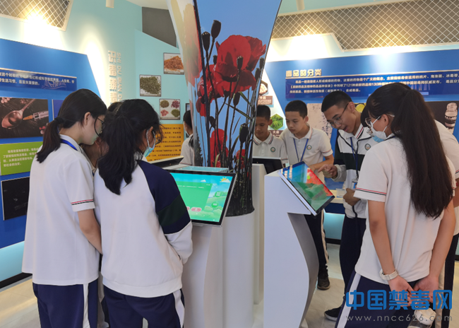 图为学生参观青少年禁毒教育基地。中国禁毒网发