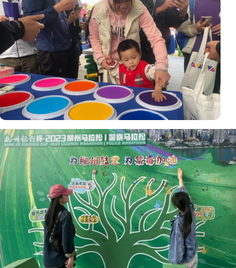 在柳州市公安局举办的“警民嘉年华”活动中,禁毒宣传也不遑多让,赢得马拉松参赛选手和市民的纷纷点赞,为整个活动带去了一抹别样的“禁毒绿”。
