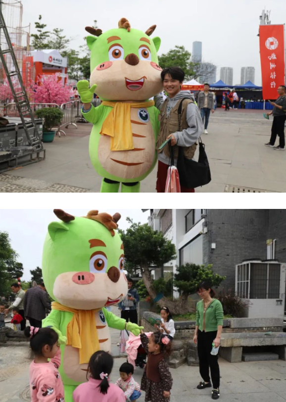 让柳州学生耳熟能详的“柳柳州州”系列动画短剧中的“龙仔”在活动中“真身亮相”,其憨态可掬的形象吸引了众多市民围观,大家纷纷与它同框合影。
