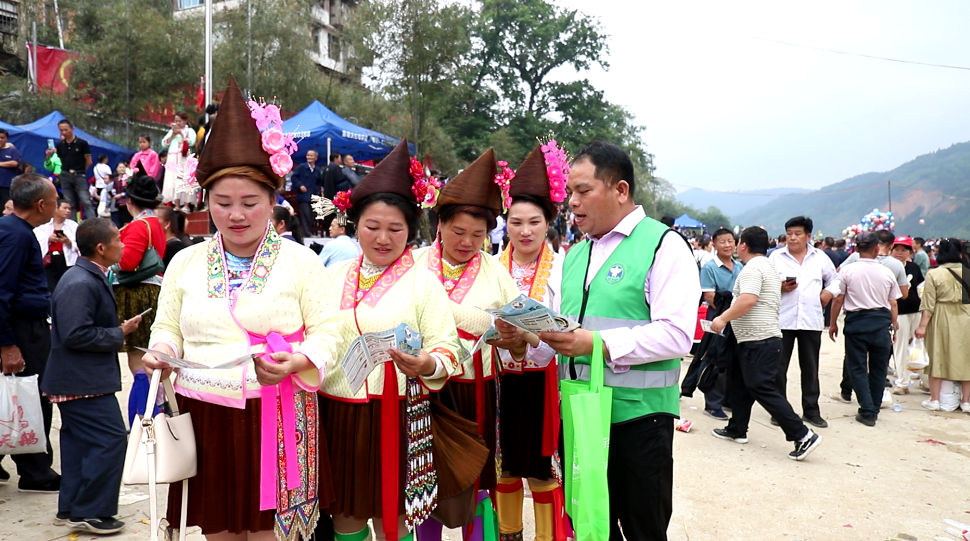 男女老少莫沾毒不听劝告挨祸害”“花炮节”上禁毒社工带领群众