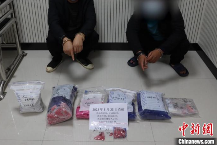 图为李某和陆某有指认查获毒品。 红河边境管理支队供图