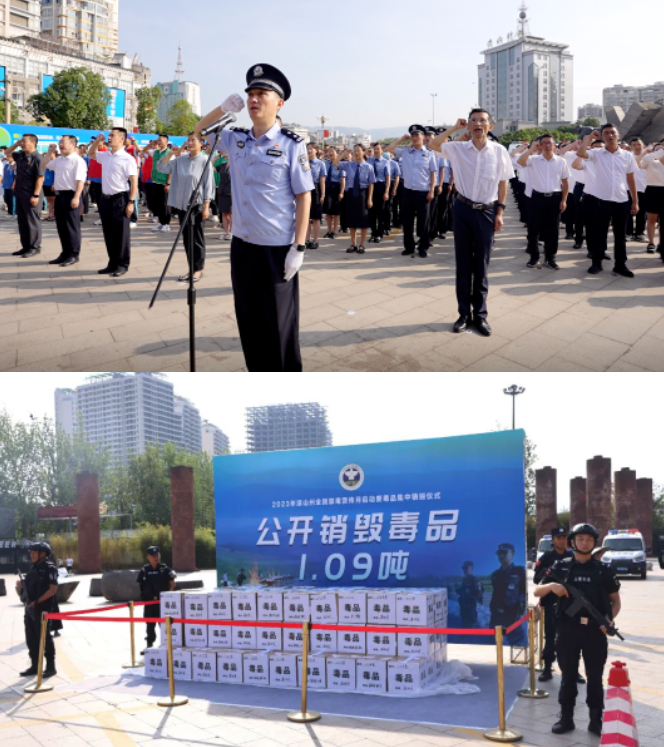6月3日,“虎门销烟”184周年纪念日,中共凉山州委禁毒委员会在西昌举办以“青春无毒•喜迎大运”为主题的凉山州全民禁毒宣传月启动暨毒品集中销毁仪式。启动仪式上,相关负责人介绍了凉山周全民禁毒宣传月相关工作、刑事案件审判工作成效及亮点以及毒品刑事案件公诉、破案打击的成效及亮点,全体人员进行了禁毒宣誓。