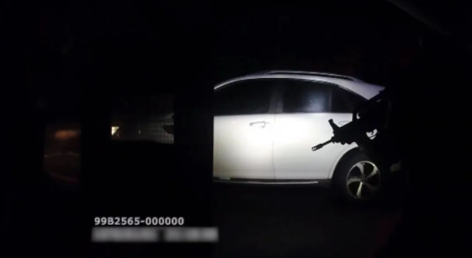 我并不清楚车内有多少人,车窗上都贴着黑膜,但我离车窗最近,隐约看见他手上拿着疑似枪形的物品对着我,顾不得多想,我也一直举着枪大声呵斥其下车。