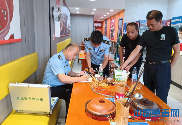 专项整治行动由县市场监督管理局党组成员、副局长一线指挥,食品检验所、城南所、局禁毒办等相关执法人员参与,深入辖区内的卤味、火锅、麻辣烫等餐饮店展开全面检查。执法人员利用“罂粟壳快检试剂”对各门店的汤料、卤料、底料等进行食品安全快速检测,检测是否含有罂粟壳(粉)成分。同时,执法人员仔细查看了店内食品的进销货台账登记情况,并向商家宣传了禁毒知识,督促商家严格按照《食品安全法》的要求,严禁在食品中添加有毒有害物质,不触碰法律红线,增强防毒拒毒意识,守法经营。