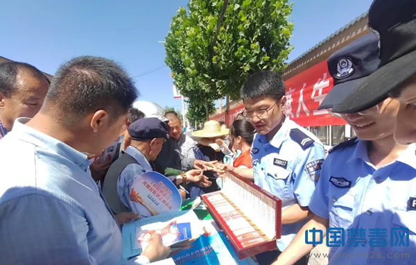 图为民警向群众展示毒品仿真模型。中国禁毒网发
