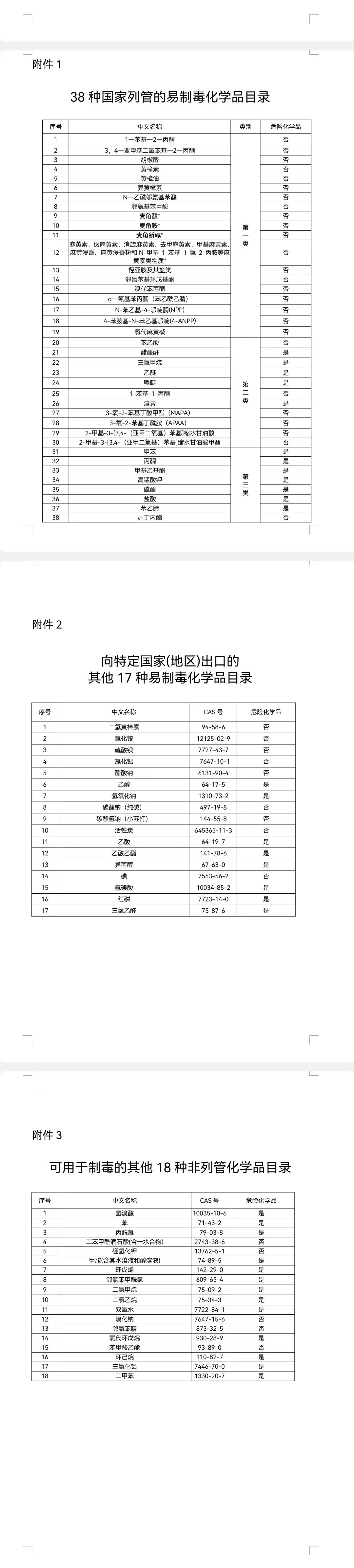 (三)其他可用于制毒的18种非列管化学品(附件3)。