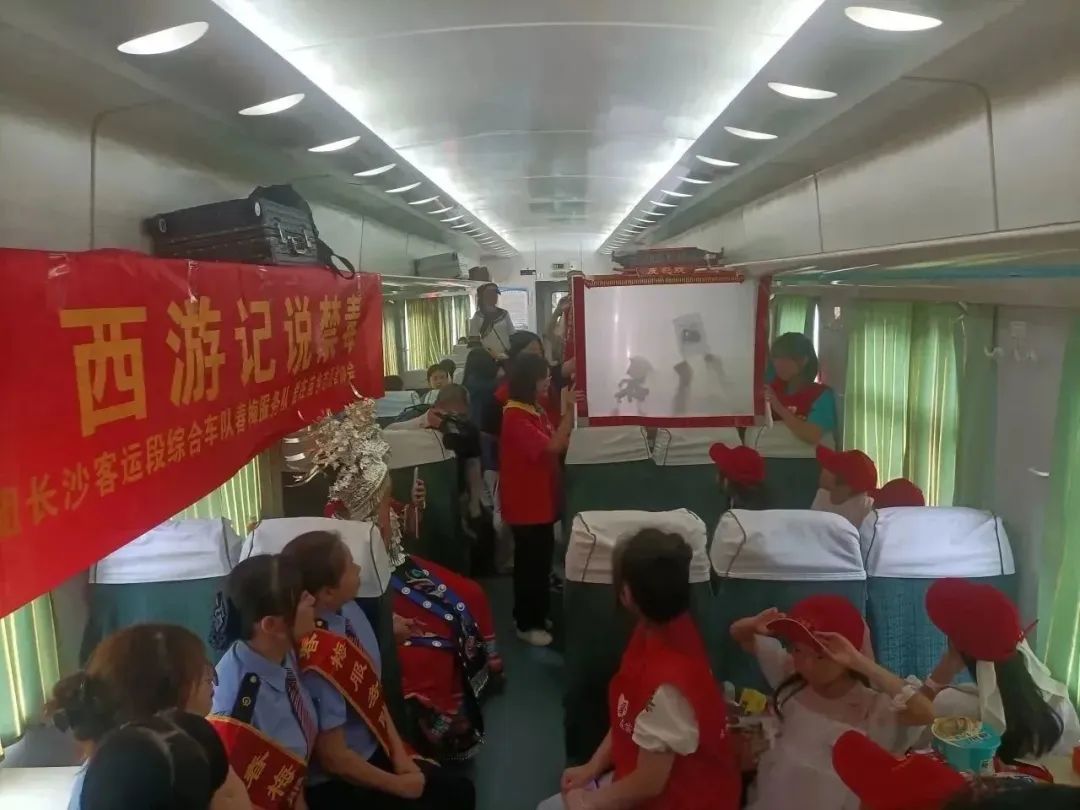 在列车上,刚看完表演的一位小女孩撅着小嘴说:“哼,那个蛇妖太坏了,骗猪八戒吃了毒药,差点害死了猪八戒,要是我,我才不会上当呢”。“我还是第一次看见用皮影戏来宣传禁毒的,这种方式好,让我们印象深刻”,一位张姓旅客说。