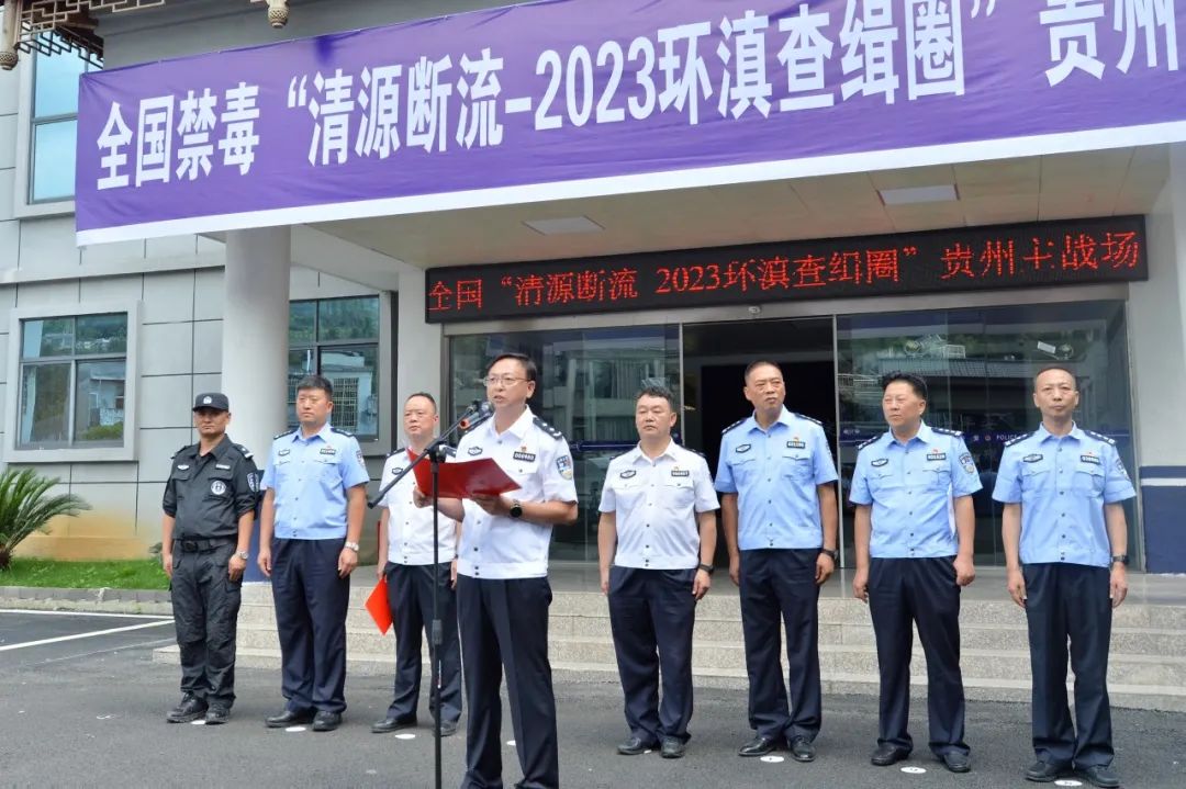 为深入贯彻落实习近平总书记关于禁毒工作的重要指示精神,筑牢“环滇毒品查缉圈”,公安部决定在贵州等省份交界地主要交通干线,集中开展公开查缉大练兵专项行动。7月31日下午,公安部“清源断流-2023环滇查缉圈”双向查缉专项行动在黔西南州晴隆县举办贵州战区启动仪式。全国禁毒“清源断流-2023”行动前方指挥部副指挥长金效国,贵州省公安厅禁毒总队二级警务专员、副总队长周松出席启动仪式并讲话。