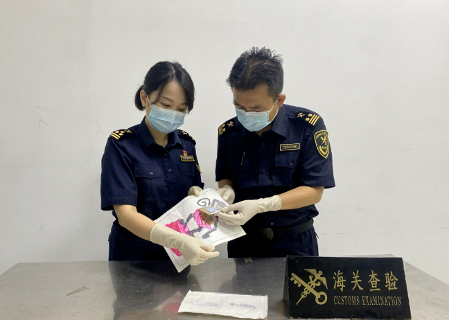 申报品名为“文件”的进境邮件竟夹藏着“蓝色药丸”。近日,南宁邮局海关在寄递渠道查获国家管制一类精神药品三唑仑。