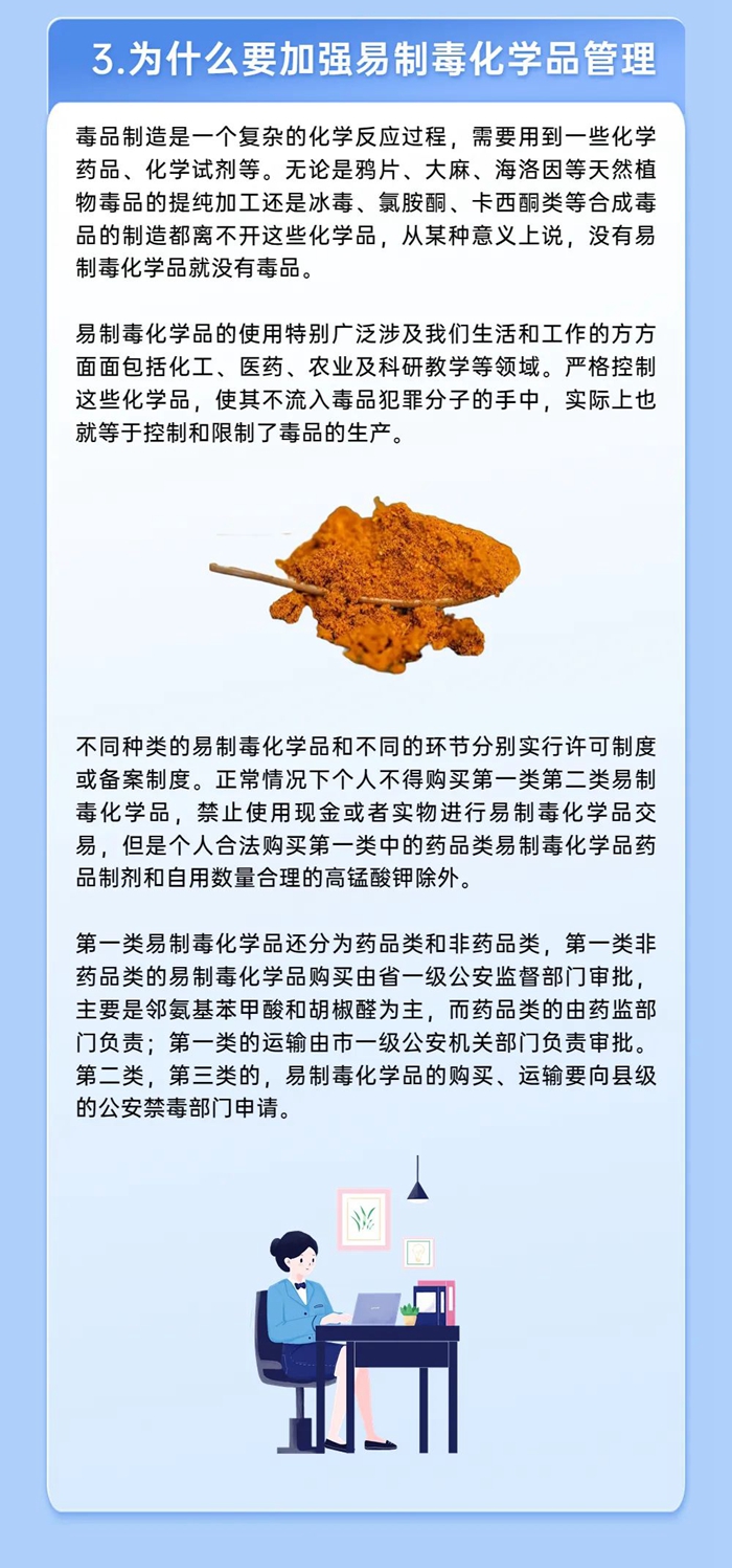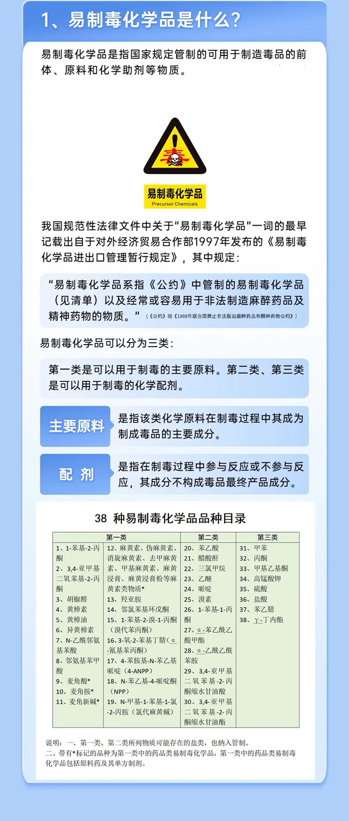 为了加强易制毒化学品管理,规范易制毒化学品的生产、经营、购买、运输和进口、出口行为,防止易制毒化学品被用于制造毒品,维护经济和社会秩序,2005年8月国务院颁布《易制毒化学品管理条例》,并先后进行了几次修订。那么,易制毒化学品到底有什么来头?为什么要加强管理?触犯相关规定会有什么后果?一起来了解一下