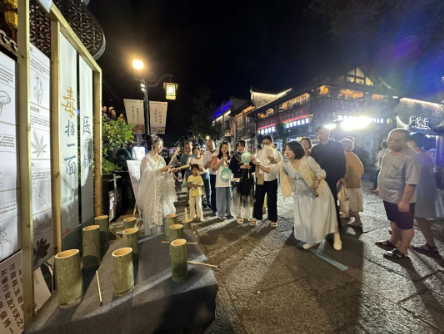 “食不毒味”特产铺、“毒挡一面”医药铺、“无毒有偶”糖人铺……据悉,本次游园会设立了8个打卡点位,通过融合水亭门深厚的文化底蕴,以投壶踏查鉴毒源、蹴鞠劲射破诱惑等寓教于乐的形式,开展禁毒知识沉浸式宣传和互动打卡,群众体验感满满。