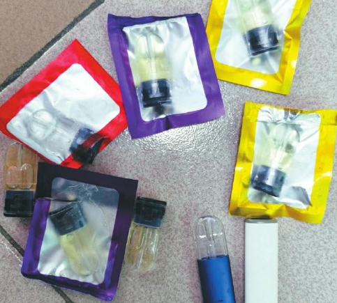 通过对案件深度研判、缜密分析,5月8日21时许,专案组民警在峨眉山市城区将涉嫌生产、销售“上头电子烟”的嫌疑人卢某菲、杜某和购买人员罗某抓获,现场查获电子烟弹231个。警方初步判断,有百余人曾在此窝点购买过“上头电子烟”,其中不乏吸毒人员。经鉴定,该批抽样送检的烟油中均检测出依托咪酯成分。