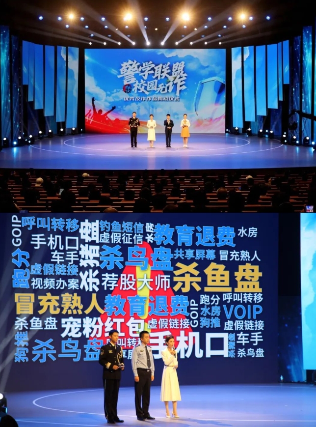 今年春季,第一届“警学联盟·校园无诈”反诈主题海报和短视频征集活动在全区高校掀起一波反诈热潮。8月29日,海淀分局在清华大学成功举办了优秀反诈作品揭晓仪式。活动现场不仅颁发了优秀反诈作品奖项,还为同学们带来了一场反诈知识盛宴。幽默精彩的反诈情景剧,变幻莫测的魔幻音乐剧,各高校学生用活泼新颖的形式演绎出大学生的反诈故事,现场观众直呼“过瘾”“没看够”!40名海淀高校校园反诈宣传大使们向全体学生发出了“共筑学校安全防火墙,弘扬全民反诈主旋律”的青春倡议,与此同时,2023年海淀校园反诈秋季学期宣传季也正式启动!